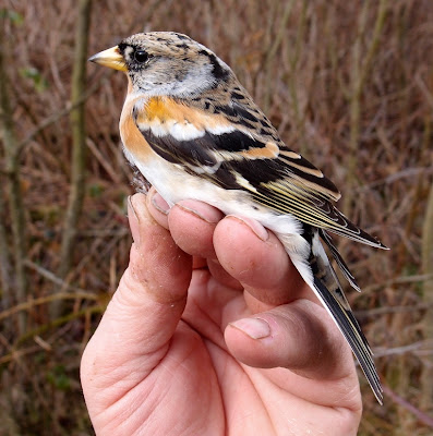 It is interesting that there are so many new birds and yet a good number of long stayers. We have now caught 134 new birds and 3 controls. Some of the long stayers such as the colour ringed bird have been feeding in the garden for more than 6 weeks now but some of the birds we have ringed have clearly moved on. There is so much we don't know or understand and that is one of the reasons I enjoy ringing so much, another is to be able to get up close to stunning creatures like the Waxwing in the photograph below.
